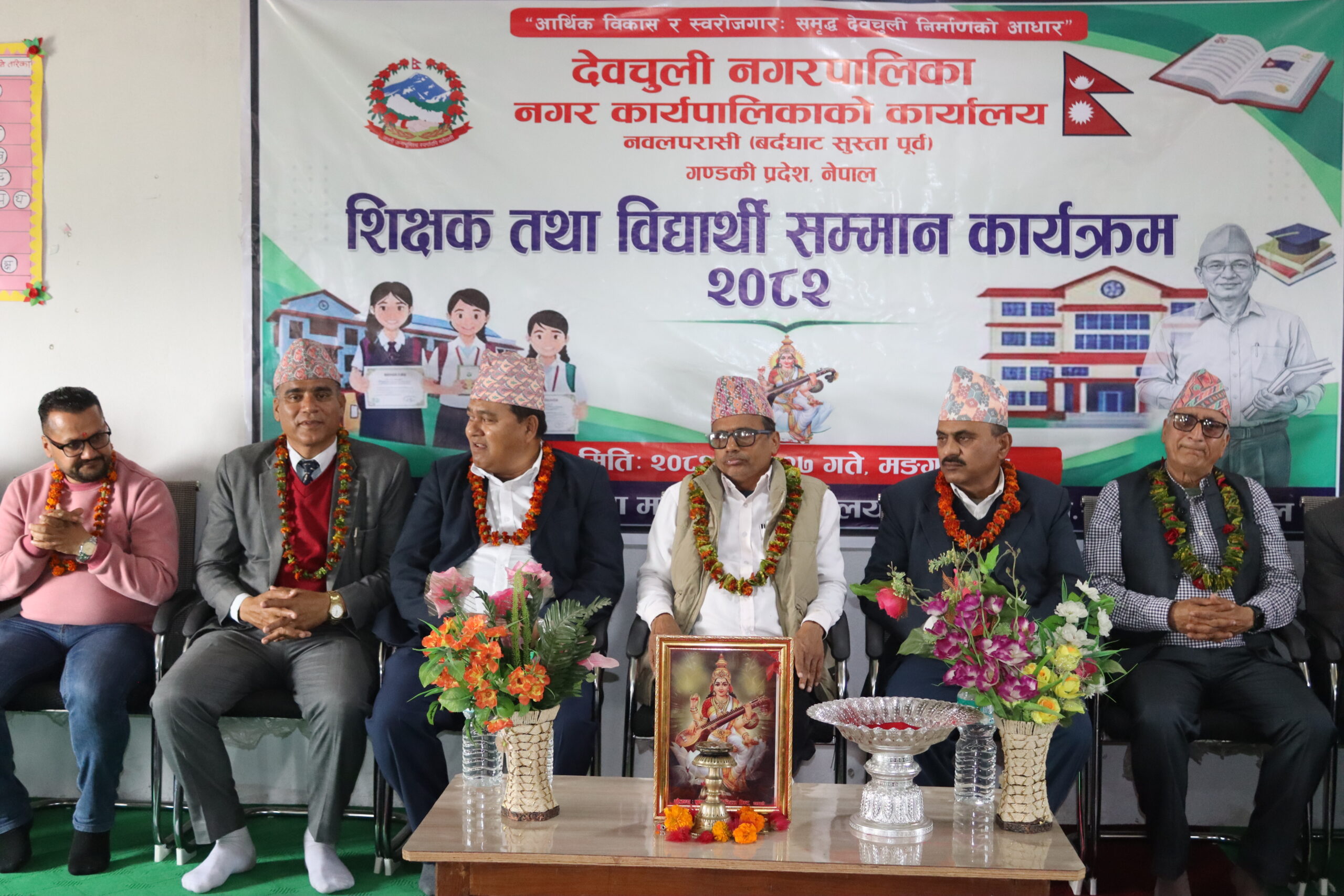 देवचुली। देवचुली नगरपालिकाद्वारा शिक्षक तथा विद्यार्थीहरु सम्मानित गरिएको छ । कक्षा ५ को परीक्षा २०८१,कक्षा ८ को आधारभूत तह उतीर्ण परीक्षा २०८१ र एस ई ई २०८१ का उत्कृष्ट विद्यार्थी सम्मान,कक्षा १२ को उत्कृष्ट विद्यार्थी सम्मान,उत्कृष्ट क्षमता भएका विद्यार्थी सम्मान, अतिरिक्त क्रियाकलापमा उत्कृष्ट थप यता