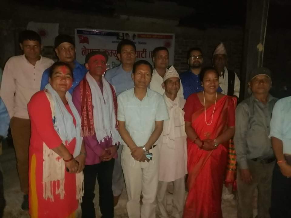 ओझा सहित नेपाली कांग्रेस क्षेत्रिय प्रतिनिधि टेक बहादुर गुराै , क्रियासिल सदस्य श्याम वहादुर थापा , दुर्गा थनेत लगायत ९० जना पार्टि प्रवेश गरेका छन् । नेकपा एमाले स्थापनाकाे ७४ ओैं स्थापना दिवसकाे अवसरमा नेकपा एमाले वडा कमिटि वडा नं १ काे आयाेजनामा वृद्ध वृद्दा सम्मान कार्यक्रम समेत गरेकाे थियाे । कार्यक्रमका प्रमुख अतिथि नवलपुर जिल्ला ईन्चार्ज सांसद तिलक महतले अविर , टीका र खादा लगाएर पार्टिमा प्रवेश गराउनु भएको थियाे ।