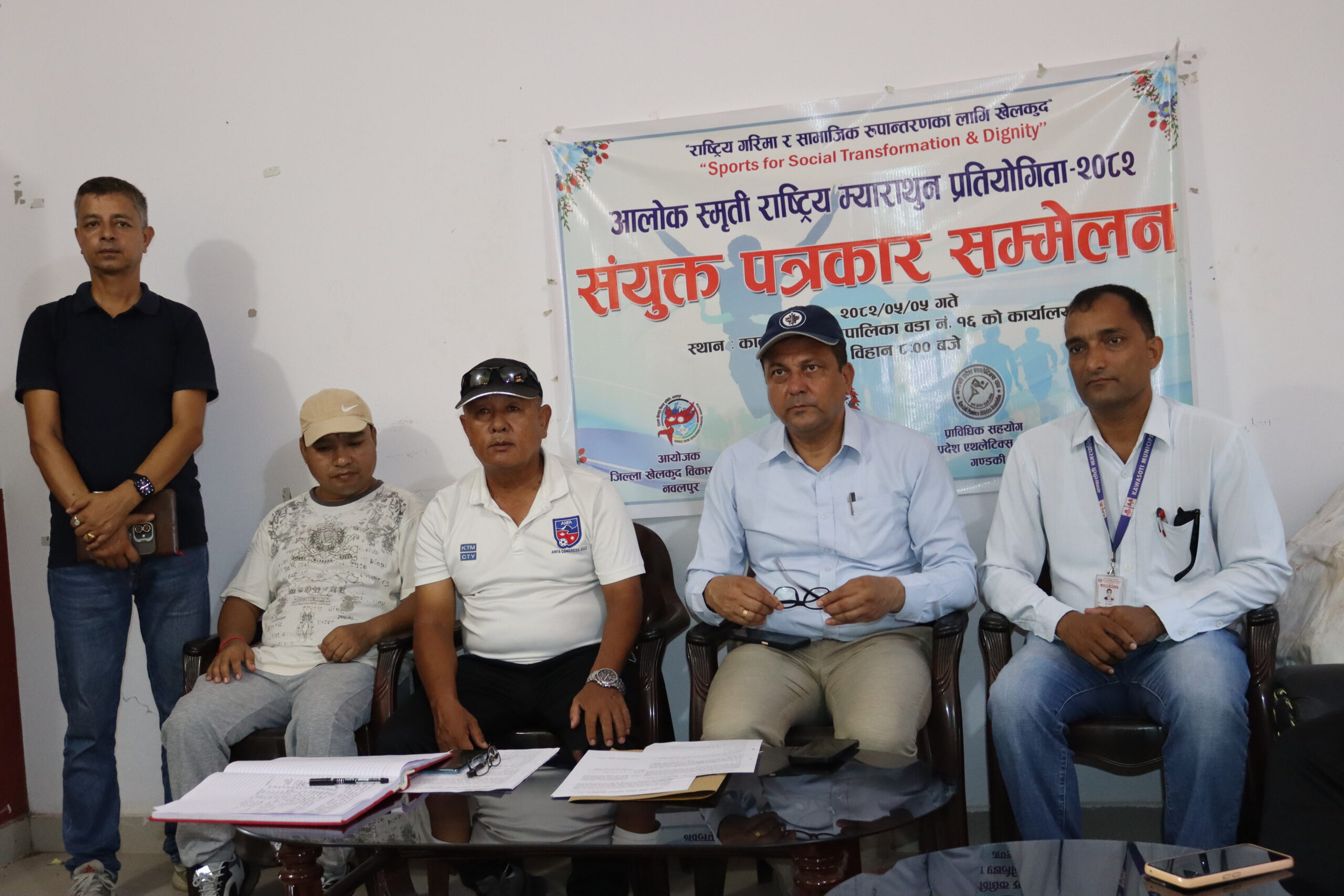 नवलपुर । नवलपुरमा आलोक स्मृति राष्ट्रिय म्याराथुन प्रतियोगिता हुने भएको छ । प्रजातान्त्रिक योद्धा यादवनाथ न्यौपाने (आलोक) को सम्झना तथा स्मरणमा २०५० सालदेखि सुरु भएको आलोक चक्रपथ हालसम्म पूरा हुन नसकेकोले प्रदेश र संघीय सरकारलाई खेल मार्फत ध्यानाकर्षण गराउनका लागि प्रतियोगिता आयोजना गर्न लागिएको हो ।
