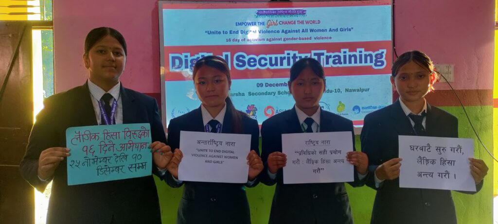 नवलपुर । मध्यविन्दु-१० मा डिजिटल सुरक्षा सम्बन्धी तालिम सम्पन्न भएको छ । लैङ्गिक हिंसा विरुद्धको १६ दिने अभियानको अवसरमा जागृति बाल तथा युवा सरोकार नेपाल, क्यान्नलान, पिपिडिसी नेपाल, एशिया सेन्टर, कन्सोर्टियम नेपाल, बालबालिका शान्ति क्षेत्र राष्ट्रिय अभियान, राष्ट्रिय बालमैत्री स्थानीय शासन फोरमको संयुक्त आयोजना तथा जनता आदर्श माध्यमिक विद्यालय, मध्यविन्दु-१० मंगलचौरको समन्वयमा डिजिटल सुरक्षा सम्बन्धी एकदिने तालिम गरिएको हो ।