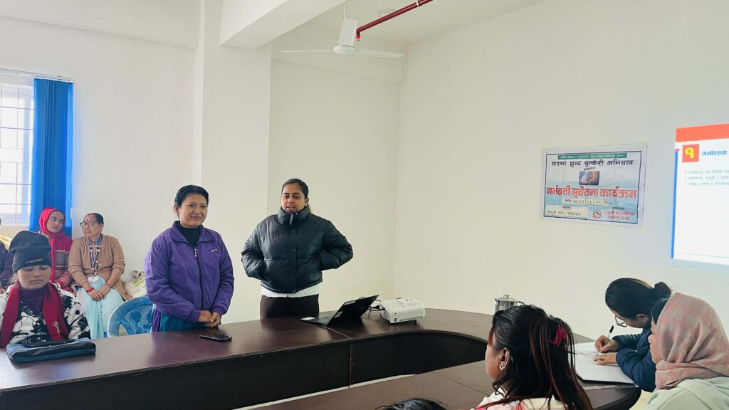 देवचुली । देवचुली नगरपालिकामा ‘घरमा शून्य सुत्केरी’ अभियानअन्तर्गत गर्भवती सचेतना कार्यक्रम सम्पन्न भएको छ। देवचुली नगरपालिकाको आयोजनामा देवचुली नगर अस्पतालमा आयोजित कार्यक्रममा गर्भावस्थामा अपनाउनुपर्ने सावधानी, सुरक्षित सुत्केरी सेवा, पोषण, नियमित स्वास्थ्य परीक्षण तथा संस्थागत सुत्केरीको महत्वबारे जानकारी दिइएको थियो।