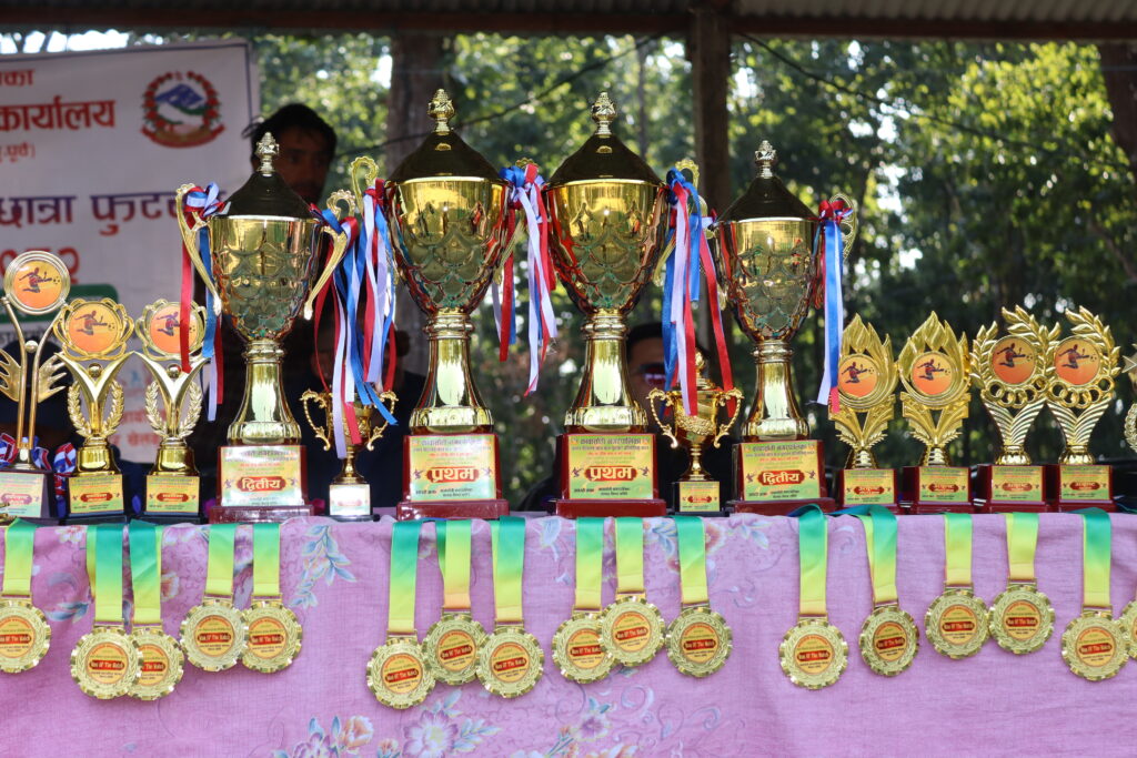 छात्रतर्फ १६ वटा विद्यालय र छात्रातर्फ ७ विद्यालयको सहभागिता रहेको प्रतियोगितामा छात्रतर्फ प्रथम, द्वितीय हुने विद्यालयले क्रमशः ३० हजार र २० हजार रुपैयाँँ सहित ट्रफी, मेडल र प्रमाणपत्र प्राप्त गर्नेछन् । छात्रतर्फ सेमिफाइनलसम्म पुग्ने विद्यालयलाई ५/५ हजार रुपैयाँँ प्राप्त गर्नेछन् । त्यसै गरि छात्रातर्फ प्रथम र द्वितीय हुने विद्यालयले १० हजार र ५ हजार सहित ट्रफी, मेडल र प्रमाणपत्र प्राप्त गर्नेछन् । छात्रातर्फ सेमिफाइनल पुग्ने विद्यालयले २/२ हजार प्राप्त गर्नेछन् । प्रतियोगितामा छात्र तथा छात्रातर्फ उत्कृष्ट खेलाडी, डिफेन्स, मिड फिल्डर र गोल रक्षकलाई ट्रफी प्रदान गरिने जनाइएको छ । प्रतियोगिता अन्तरगत मंगलबार जनता मावि विष्णुनगरका विरुद्ध ज्ञानोदय माविबीच पहिलो खेल, जनकल्याण मावि रिठ्ठेपानीका विरुद्ध लुम्बिनी आवासीय माविबिच दोस्रो खेल र सरस्वती नमुना मावि हसौराका विरुद्ध लर्डबुद्ध एकेडेमीबिच तेस्रो खेल हुने खेल संयोजक सुमन क्षेत्रीले जानकारी दिनुभयो ।