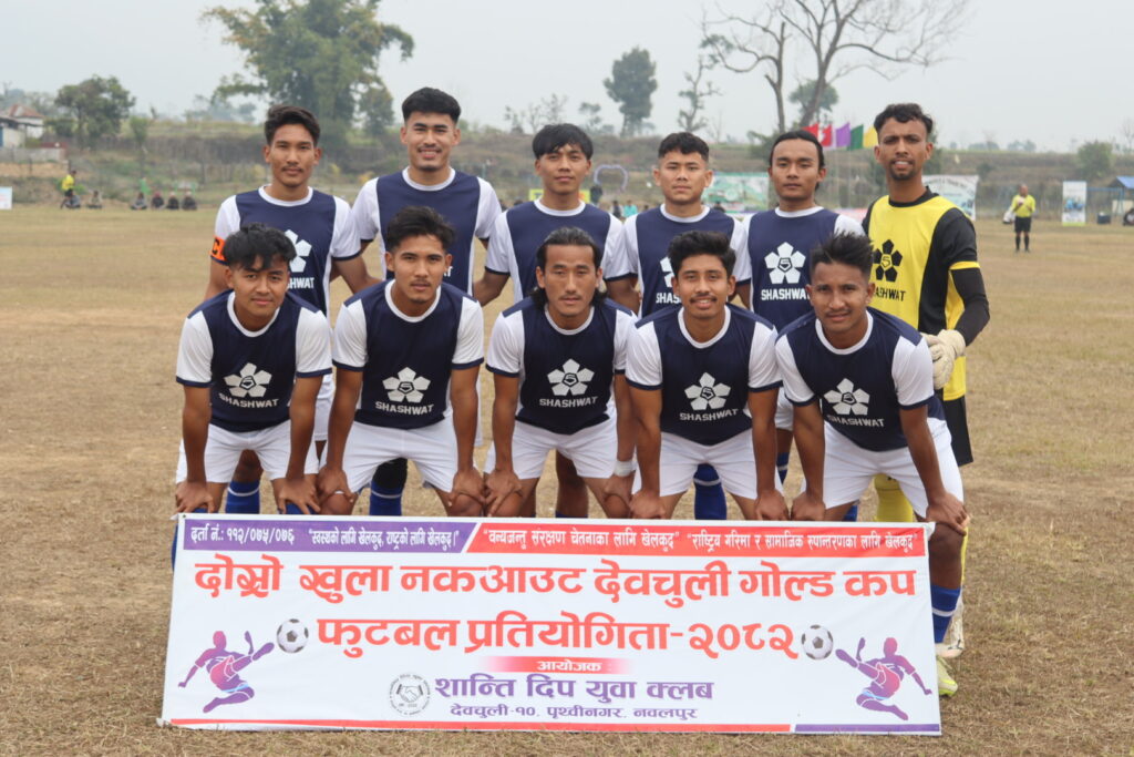 देवचुली । देवचुली – १० मा संचालित भि एक्स एल एजुकेसन दोस्रो देवचुली गोल्डकप फुटबल प्रतियोगितामा अठ्ठाइस बिगाहा युवा क्लब कावासोती फाइनल प्रवेश गरेको छ । शान्तिदिप युवा क्लबको आयोजनामा नगर रंगशाला देवचुली-१० मा मंगलबार भएको खेलमा अठ्ठाइस बिगाहा युवा क्लब विजयी हुँदै फाइनल प्रवेश गरेको हो ।